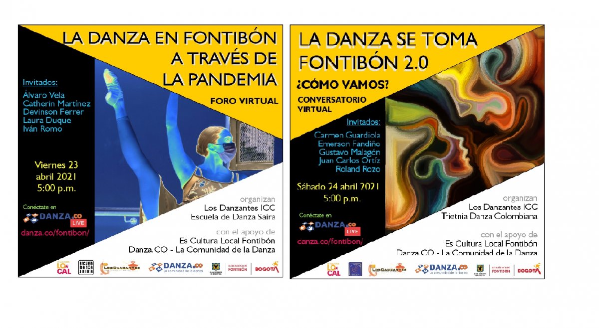 Los Danzantes Industria Creativa y Cultural en el marco de la Beca Es Cultura Local Fontibón (Convenio 175-2020) realizó el 23 y 24 de abril de 2021 dos conversatorios virtuales en alianza con las entidades locales Trietnia Danza Colombiana y la Escuela de Danza Saira.