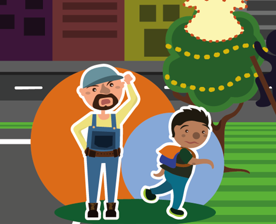 Después de que los muchachos hacen el llamado de atención llegan los encargados de la instalación. Los niños al verse descubiertos sacan rápido lo que habían guardado en el maletín y se van corriendo.
